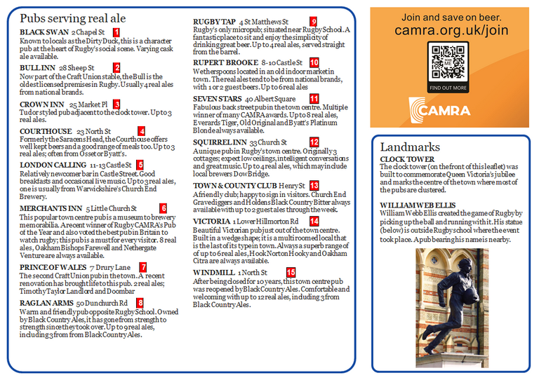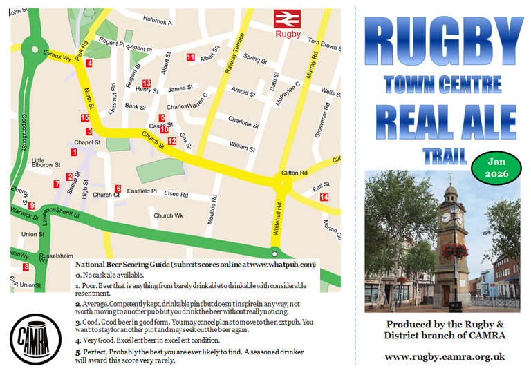 Real Ale Trail Rugby is a town rich in history and what better way to meander through the streets than to sample the delights of our many Real Ale pubs. We offer a Real Ale Trail guide to help you find your way.